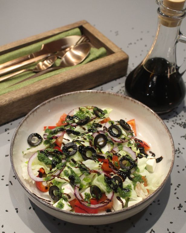 Греческий 475 руб. В корзину Томаты, огурец, салат айсберг, сыр Фета, маслины, лук красный, соус песто, бальзамический крем Томаты, огурец, салат айсберг, сыр Фета, маслины, лук красный, соус песто, бальзамический крем С этим товаром покупаютВ корзинуГорячая тортилья с чесночной шапочкой525 ₽ В корзинуВ корзинуТом Ям с цыпленком629 ₽ В корзинуВ корзинуФетучини с креветками599 ₽ В корзинуВ корзинуЧикенбургер + Картофель Фри589 ₽ В корзинуВ корзинуМедовик345 ₽ В корзинуВ корзинуСмузи манго-банан335 ₽ В корзину