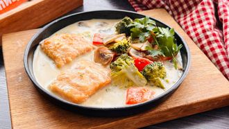 новинка Горбуша в сливочно-чесночном соусе 699 руб. В корзину Сочная горбуша в нежном сливочно-чесночном соусе с хрустящими овощами, брокколи , болгарский перец и шампиньоны Сочная горбуша в нежном сливочно-чесночном соусе с хрустящими овощами, брокколи , болгарский перец и шампиньоны